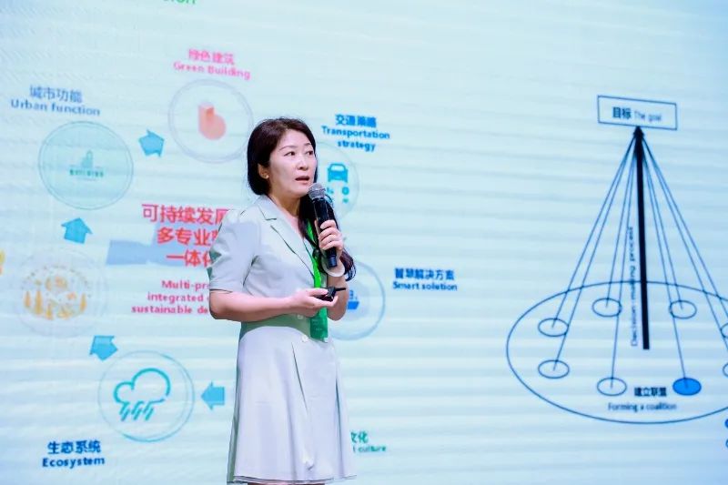 瑞典皇家理工学院城市与区域研究博士徐淼分享了“可持续发展与绿色健康—中外实践项目”。通过德国博物馆项目、远景集团零碳产业园区项目、零排放居住方舱等项目的实践探究,徐淼博士总结道,一方面,可持续发展需要建筑、室内、环境、交通等不同领域的专家共同参与,以确保项目能够全面地满足当前和未来的需求;另一方面,建筑设计和室内设计需要紧密结合,以确保空间的功能性和美观性,这种跨专业的合作可以更好地实现项目的整体目标,创造出既实用又美观的空间。